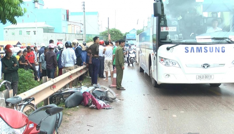 Hiện trường vụ tai nạn giao thông giữa xe đưa đón công nhân và người tham gia giao thông