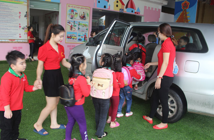 Xe đưa đón trẻ tại một trường Mầm non