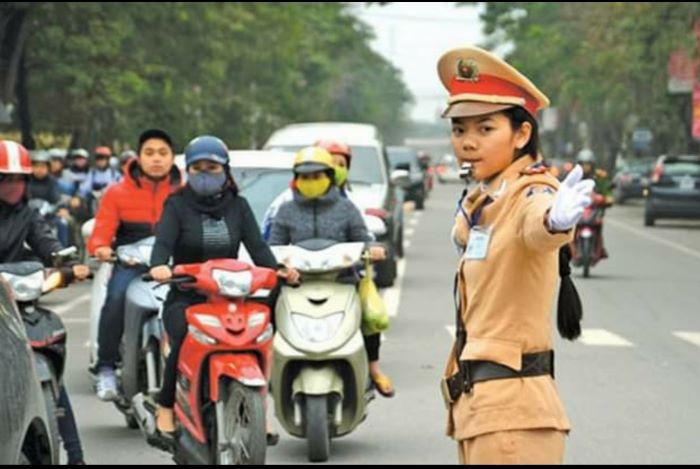 Các phương tiện di chuyển theo hiệu lệnh của người điều khiển giao thông