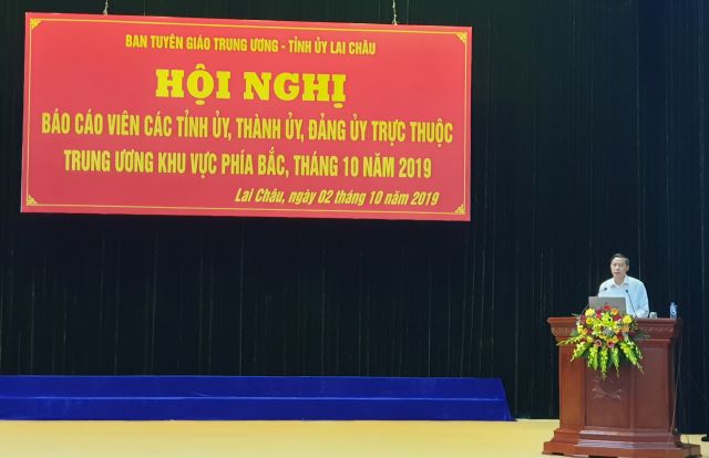 Ngày 02/10, tại thành phố Lai Châu (tỉnh Lai Châu), Ban Tuyên giáo Trung ương phối hợp với Tỉnh ủy Lai Châu tổ chức Hội nghị Báo cáo viên các tỉnh ủy, thành ủy, đảng ủy trực thuộc Trung ương, tháng 10/2019. Dự Hội nghị có đại diện Thường trực Tỉnh ủy Lai Châu, Trung tâm Thông tin công tác Tuyên  giáo Ban Tuyên giáo Trung ương; báo cáo viên Trung ương các tỉnh ủy, thành ủy khu vực phía Bắc, các đảng ủy tập đoàn, tổng công ty; lãnh đạo Trường Chính trị các tỉnh, thành phố phía Bắc.