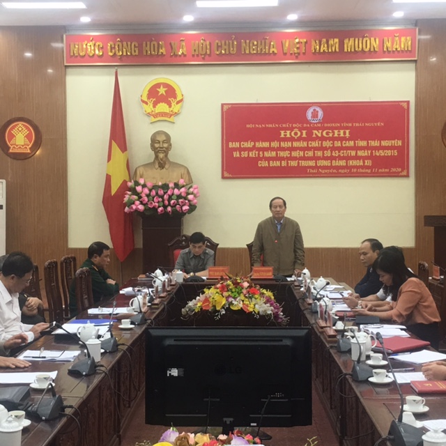 Ngày 10/11, tại Hội trường Ủy ban nhân dân tỉnh, Hội Nạn nhân chất độc da cam tỉnh Thái Nguyên tổ chức Hội nghị Ban Chấp hành và sơ kết 5 năm thực hiện Chỉ thị số 43-CT/TW ngày 14/5/2015 của Ban Bí thư Trung ương Đảng khóa XI về “Tăng cường sự lãnh đạo của Đảng đối với công tác giải quyết hậu quả chất độc hóa học do Mỹ sử dụng trong chiến tranh ở Việt Nam”. Đến dự có PGS, TS, Trung tướng Đặng Nam Điền, Phó Chủ tịch Hội Nạn nhân chất độc da cam Việt Nam và đại biểu một số ban, sở, ngành tỉnh Thái Nguyên.