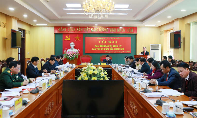 Ngày 12/12, Ban Thường vụ Tỉnh ủy Thái Nguyên tổ chức Hội nghị lần thứ 55, khóa XIX, nhiệm kỳ 2015 - 2020 để thảo luận, cho ý kiến vào nhiều nội dung quan trọng về công tác xây dựng Đảng, xây dựng hệ thống chính trị và phát triển kinh tế - xã hội. Đồng chí Trần Quốc Tỏ, Ủy viên Trung ương Đảng, Bí thư Tỉnh ủy, Trưởng đoàn ĐBQH tỉnh; đồng chí Vũ Hồng Bắc, Phó Bí thư Tỉnh ủy, Chủ tịch UBND tỉnh chủ trì Hội nghị. Dự Hội nghị có đại biểu các ban xây dựng đảng Trung ương, các đồng chí Ủy viên Ban Thường vụ Tỉnh ủy; lãnh đạo UBND tỉnh và một số sở, ngành liên quan.